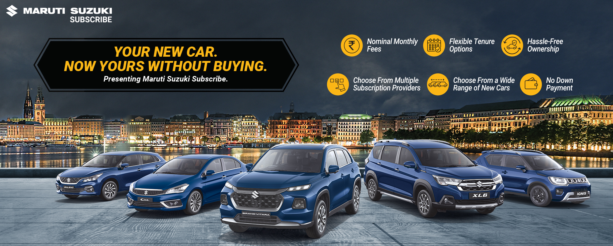 Located in Kanchipuram, Ganesh offers a plethora of options of Nexa cars for Maruti Suzuki Subscribe. You can choose your desired Maruti Suzuki car and drive it home at nominal monthly fees for a variety of flexible tenure periods. Whether you prefer Hatchback, Sedan, SUV or even MUV you are sure to find it at Ganesh, Kanchipuram with an easy Maruti Suzuki Subscribe plan.
